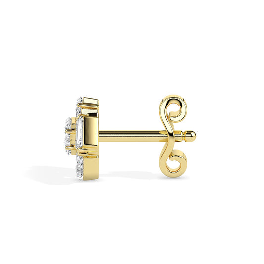 Geometric Cascade Golden Stud With Round And Baguette Cut Stones