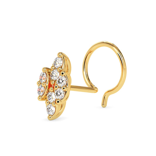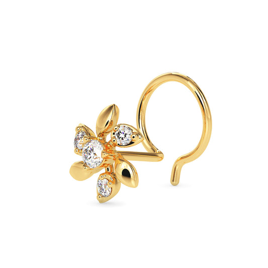 4 Petal Floral Round Stone Centering Gold Nosepin