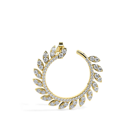 Rowan-Leaf Inspired Golden Hoop Earring with small diamonds