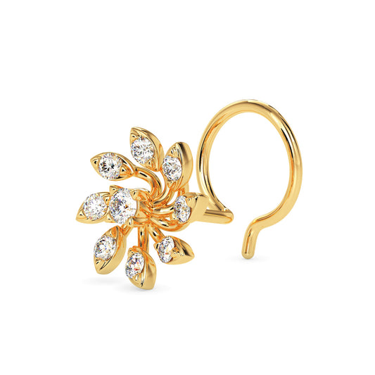 Classy Floral Design Gold Nosepin With Round Diamonds