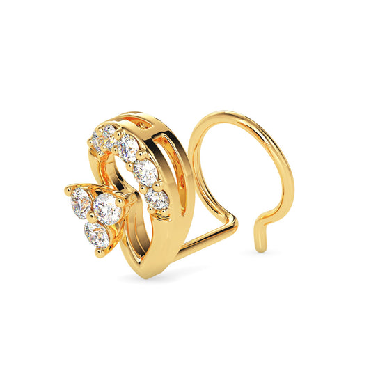 Classy Floral Design Gold Nosepin With Round Diamonds